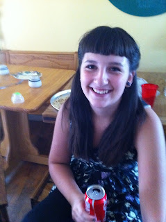 My hair is really thick so I can't keep it up very long, I have never dyed it. It is naturally curly and sometimes I like to straighten it. I love putting my hair up in victory rolls and once and a while I put it in curlers. I love my betty bangs, my sister cuts my hair and I love it! <3